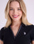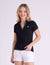 A: The split neck provides a more feminine and airy silhouette while eliminating the bulk of buttons. It offers an easy-to-wear, "popover" style that stays flat and secure during active movement.