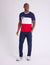 Patriotic Colorblock Design: Features distinct horizontal panels of navy, white, and red for a bold Americana look.