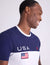 USA Graphics: Includes a crisp white "USA" chest print and a high-quality American flag patch.