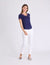 The V-Neck Signature Stripe Trim T-Shirt is the definitive choice for the woman seeking a sophisticated upgrade to the standard plain tee. While basic shirts can feel uninspired, the graphic stripe detail and precision tailoring provide a designer-level edge that elevates even the simplest outfit. The specialized breathable build and high-recovery knit ensure you remain comfortable through travel, daily errands, or active leisure, making this tee a reliable powerhouse for any modern seasonal rotation.