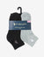 6-pack of quarter crew socks in assorted core colors (black, grey, white)