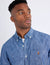 This shirt offers the perfect blend of everyday comfort and signature detail. The rich indigo chambray gives off casual-cool vibes, while the multicolor logo embroidery adds just enough color and branding without being loud.