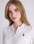 Featuring a traditional polo shirt collar with a button placket, contrast stripe detailing at the sleeve cuffs, and the signature embroidered U.S. Polo Assn. logo at the chest, this top delivers timeless sport-inspired style. The ribbed hem band provides a flattering, secure fit that sits comfortably at the waist, making it perfect for pairing with denim, trousers, or skirts.