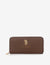 Our LARGE ZIP AROUND WALLET exudes luxury with its polished metal logo and a zip around closure, featuring a branded zipper pull for an extra touch of distinction. Inside, two compartments house eight slots for credit cards, complemented by a secure zippered pocket.