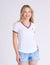 The V-Neck Signature Stripe Trim T-Shirt is the definitive choice for the woman seeking a sophisticated upgrade to the standard plain tee. While basic shirts can feel uninspired, the graphic stripe detail and precision tailoring provide a designer-level edge that elevates even the simplest outfit. The specialized breathable build and high-recovery knit ensure you remain comfortable through travel, daily errands, or active leisure, making this tee a reliable powerhouse for any modern seasonal rotation.