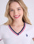 Signature Stripe Detailing: Features iconic red, white, and navy contrast stripes integrated into the ribbed V-neckline and sleeve cuffs for an authentic heritage focal point.