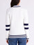 Striped v-neckline, cuffs, and hem for varsity-inspired detail